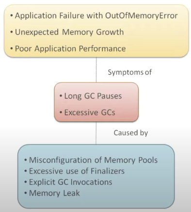 If garbage collecter pauses for a long time or excess amount of garbage collecter, then it could make application Failure with OutOfMemoryError, unexpected memory growth and poor application performance.